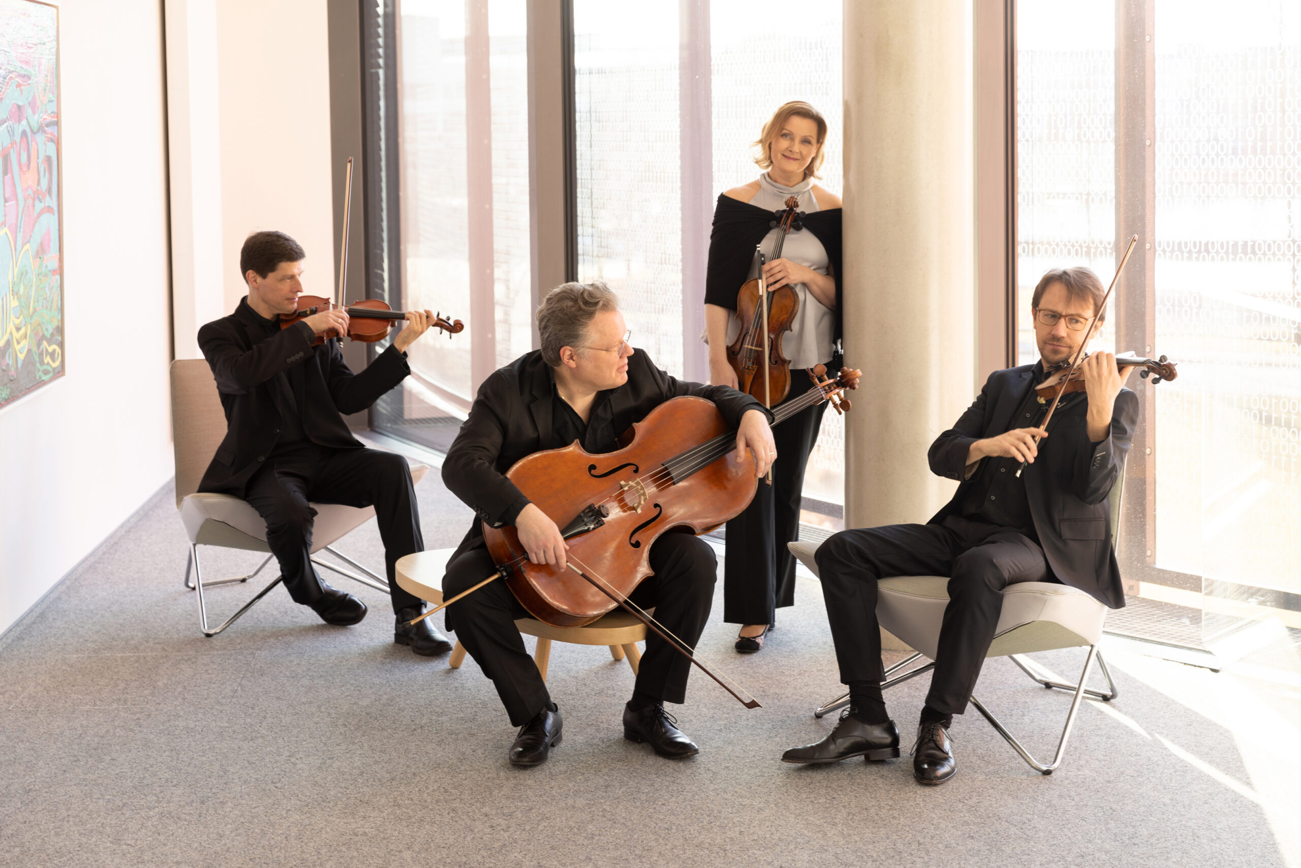 Die internationale Festivalbesetzung des Henschel Quartetts (Christoph Henschel & Gertrud Schilde, Violinen | Monika Henschel, Viola | Hendrik Blumenroth, Violoncello) lässt Bachs Musik erblühen.